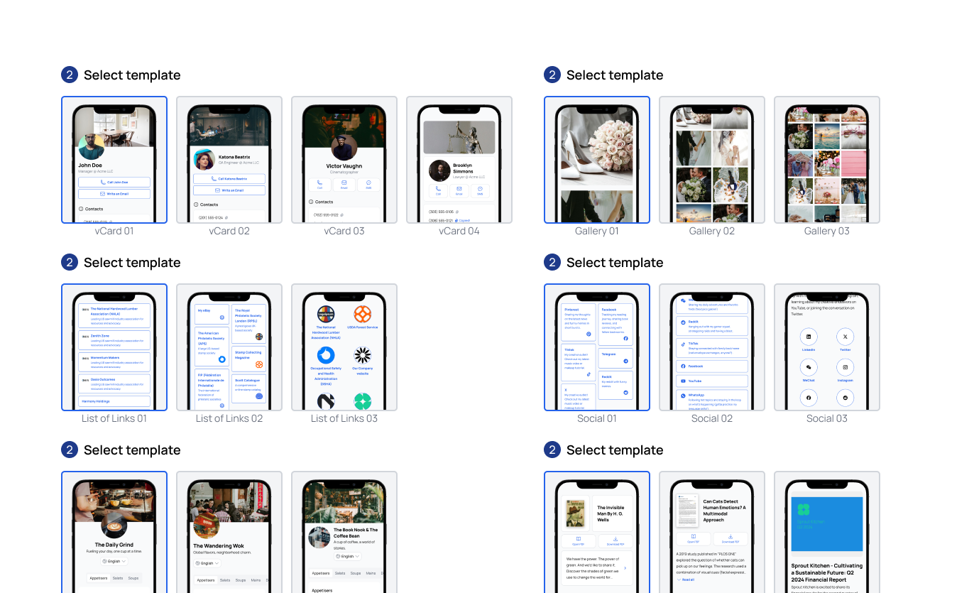 Designed a flexible UI system that allowed users to generate branded, localized QR microsites across multiple layouts, themes, and languages — while maintaining visual consistency, accessibility, and scalability.